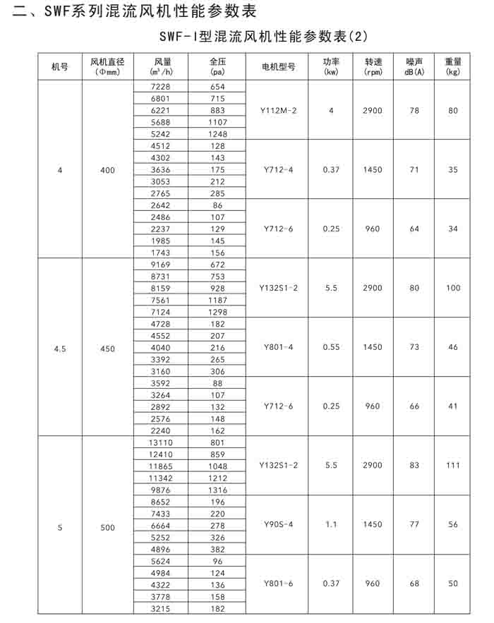 二、SWF(HLF、GXF)-I、II、H 系列高效混流風(fēng)機(jī)