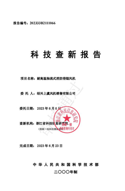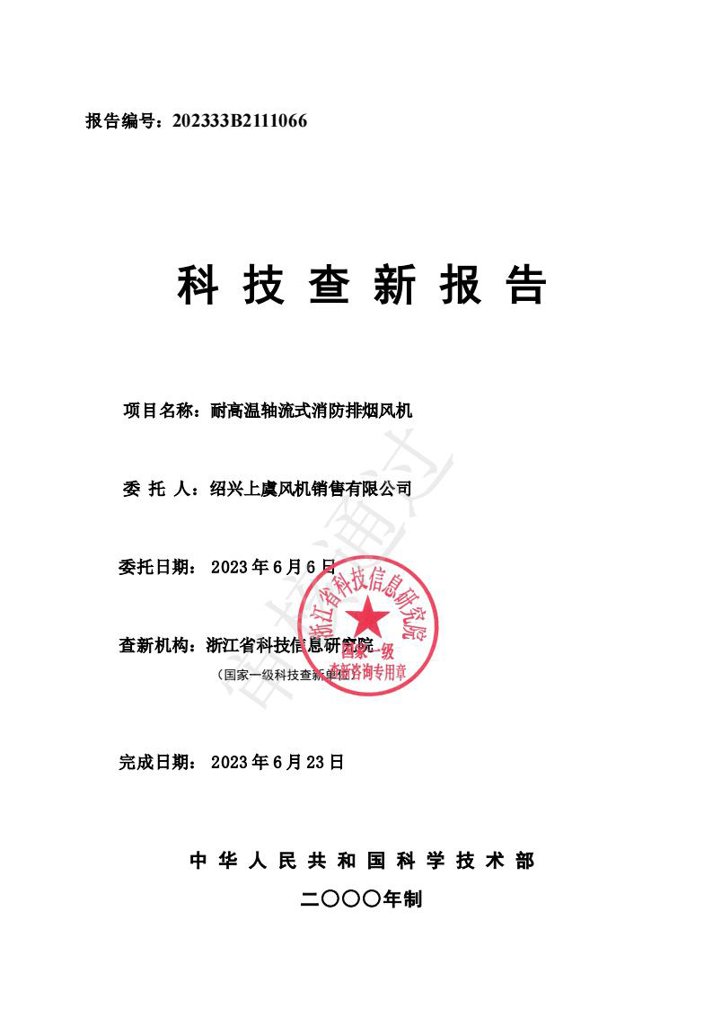 科技查新報告(耐高溫消防排煙風機)