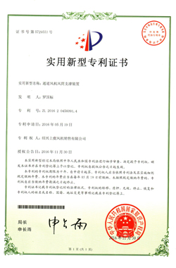 通道風機風筒支撐裝置專利證書
