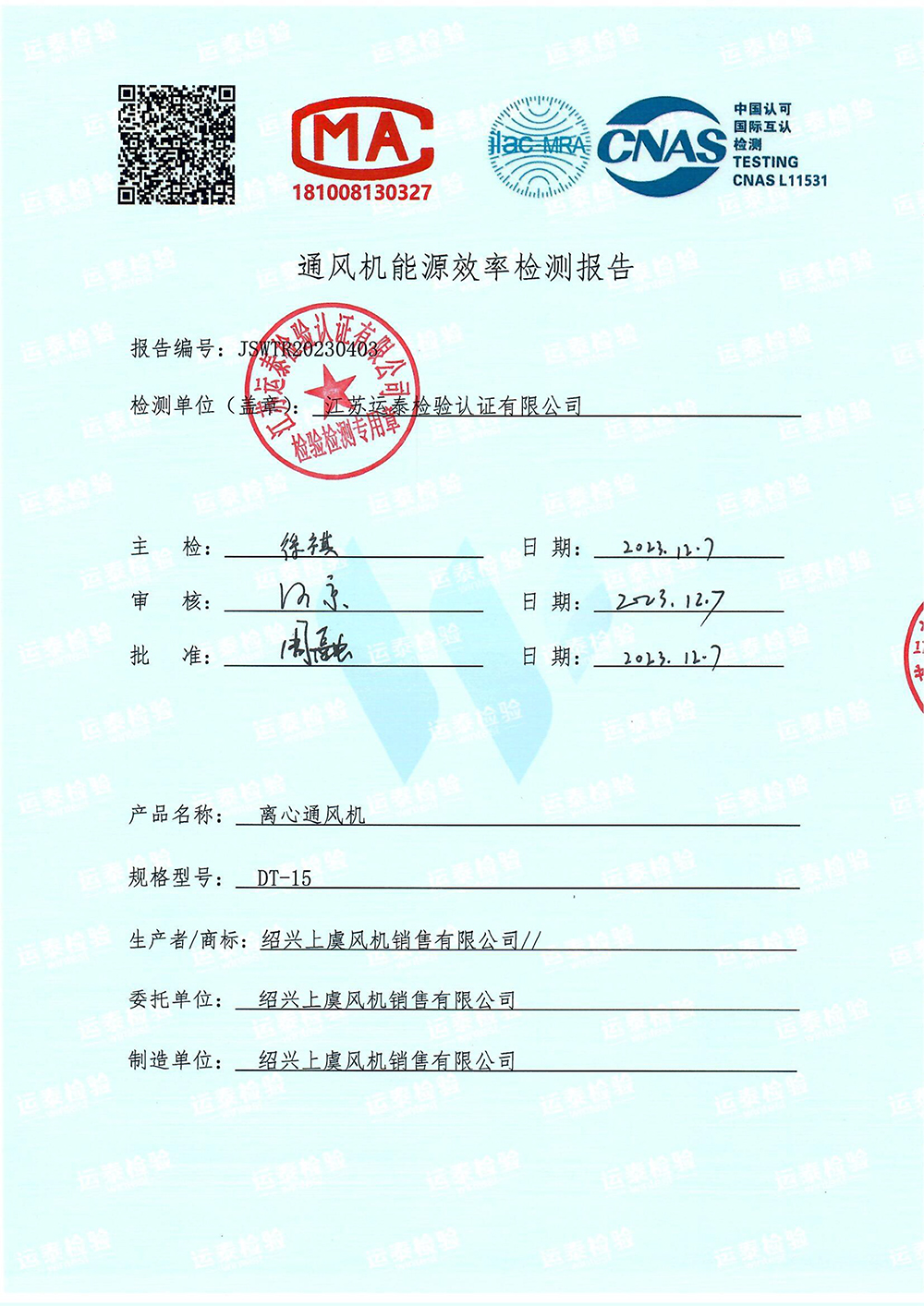 DT-15能效檢測報告 |